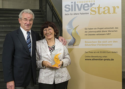 Seit über 40 Jahren setzt sich Edith Claußen aus Erfurt mit großem persönlichem Engagement für die Belange von Diabetikerinnen, Diabetikern und ihren Angehörigen ein. Bereits zu Zeiten der DDR führte sie Beratungen und Diabetes-Schulungen durch und kümmerte sich insbesondere auch um die Versorgung von älteren Menschen mit Diabetes. Nach der Wende gründete sie den Landesverband Thüringen des DDB, rief die Diabetiker-Akademie ins Leben und initiierte das Projekt "Diabetes-Lotsen". Durch ihre Mithilfe wurden zahlreiche Diabetesveranstaltungen und Sommerferien-Programme für Kinder auf die Füße gestellt.Mit unermüdlichem Einsatz ist Edith Claußen in verschiedenen Gremien tätig, um im gesundheitspolitischen Bereich Verbesserungen für Betroffene zu erreichen. Die persönliche Beratung in der Landesgeschäftsstelle des DDB und die Besuche in den Selbsthilfegruppen zählen zu ihrem täglichen Programm. "Ich habe selbst keinen Diabetes", berichtet die Thüringerin. "Aber durch mein Engagement über nun 40 Jahre habe ich manchmal das Gefühl, dass ich auch betroffen bin, weil ich alles mitempfinde." Edith Claußen wird für ihr unermüdliches Engagement mit dem SilverStar "Ehrenpreis für das Lebenswerk" geehrt. "Wir sehen sie als großes Vorbild für die Ausübung eines Ehrenamtes und möchten mit der Auszeichnung ihren jahrzehntelangen großen Einsatz für Menschen mit Diabetes würdigen", verdeutlicht der Juryvorsitzende Professor Rüdiger Petzoldt.
