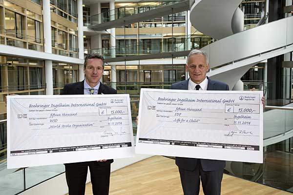 Bildunterschrift: Je 15.000 Euro für die Welt-Schlaganfall-Organisation (WSO) und das "Life for a Child"-Programm