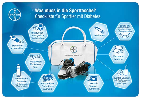 Damit der Spaß am Sport im Vordergrund steht, müssen sich die Sportler voll und ganz auf ihre Messwerte verlassen können. Die Contour® Next Blutzuckermesssysteme von Bayer, die den Teilnehmern zur Verfügung gestellt werden, messen besonders präzise und erfüllen die strengeren Anforderungen an die Messgenauigkeit der neuen ISO-Norm 15197:2013.[1] Treten trotz aller Vorsichtsmaßnahmen Unterzuckerungen auf, lassen schnell wirksame Kohlenhydrate wie Traubenzucker den Blutzuckerspiegel wieder steigen. Der Notfall-Zucker gehört deshalb zur Grundausstattung für jeden Sportler mit Diabetes, wie auch ausreichend Wasser, Aceton-Teststreifen für einen Ketontest und Diabetiker Ausweis.