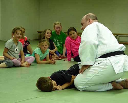 Düsseldorfs Judo-Club 71 lädt die teilnehmenden Grundschülerinnen und Grundschüler der Initiative "SMS. Sei schlau. Mach mit. Sei fit." zu einem Judo-Training ein und ermöglicht ihnen so, die japanische Kampfsportart, die übersetzt der sanfte Weg bedeutet, kennenzulernen. "Judo ist mehr als nur ein Bewegungssport, Judo ist eine Philosophie. Es hilft Konflikte gewaltfrei zu lösen, lehrt Werte und gegenseitigen Respekt", betont der erste Vereinsvorsitzende Sebastian Witzmann. "Judo stellt für Kinder eine ausgezeichnete Möglichkeit dar, Motorik, Kondition und Kraft zu trainieren", unterstreicht Projektleiter Prof. Karsten Müssig.Die von Prof. Karsten Müssig geleitete Initiative "SMS. Sei schlau. Mach mit. Sei fit." an Düsseldorfer und Kölner Grundschulen möchte Übergewicht und anderen Lebensstil bedingten Erkrankungen im Kindes- und Jugendalter entgegenwirken.