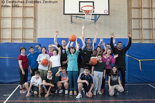 Kinder der Initiative "SMS. Sei schlau. Mach mit. Sei fit." des Deutschen Diabetes-Zentrums erleben Schnuppertraining mit den Basketball-Profis der ART Giants