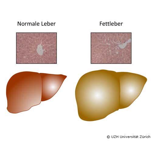 Starkes Übergewicht wirkt sich auch auf die Leber aus: Fast ein Drittel aller Erwachsenen leidet unter chronischer Leberverfettung, was zu Entzündungen führen und sogar Krebs auslösen kann. Forschende des Kinderspitals Zürich und der Universität Zürich haben nun Signalwege in den Zellen aufgezeigt, die bei der Entstehung einer Leberverfettung eine wichtige Rolle spielen.In der Schweiz ist rund jeder zehnte Erwachsene stark übergewichtig, adipös. Eine solche Fettleibigkeit kann nicht nur zu Diabetes- oder Herzkreislauf-Erkrankungen führen, sondern auch zu einer Verfettung der Leber. Weltweit sind rund 25 bis 30 Prozent aller Erwachsenen und zunehmend auch Kinder von solchen Steatosen betroffen - mittlerweile die häufigste chronische Lebererkrankung. Bei einem Teil der Patienten kommt es zur Entzündung, was zu einer narbigen Schrumpfung der Leber (Zirrhose) oder gar zu Krebs führen kann.