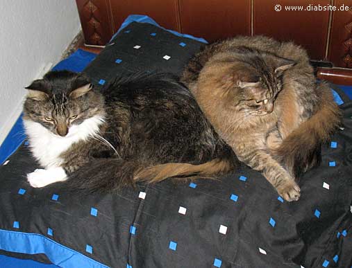 Jetzt messen! 180 mg/dl (10 mmol/l)! Jetzt noch einmal: Traubenzucker und Marmelade! Wieder messen! 320 mg/dl (17.8 mmol/l)! Na bitte, wofür gibt es Insulin? Der Kreis schließt sich. Kätzchen habt gut aufgepasst, ihr kleinen Schätzchen, ein Kekslein für euch. Lege mich wieder ins Bett, zwei Stunden sind vergangen.